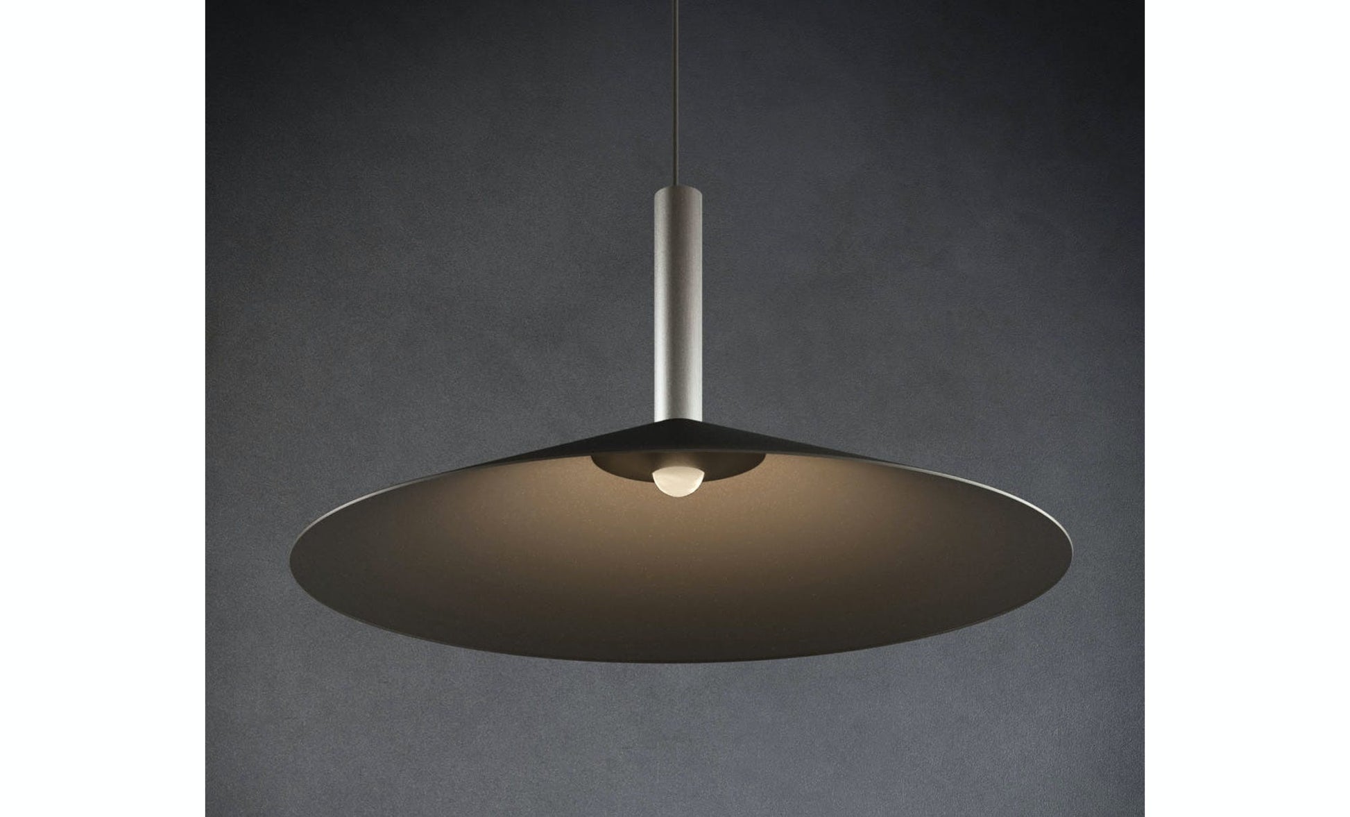 Inspired by fishing fixing systems and formed by a simple and essential structure. Two thin metal lines, in fact, make up the body of the model that ends in a delicate conical diffuser. Featuring an integrated LED lamp.