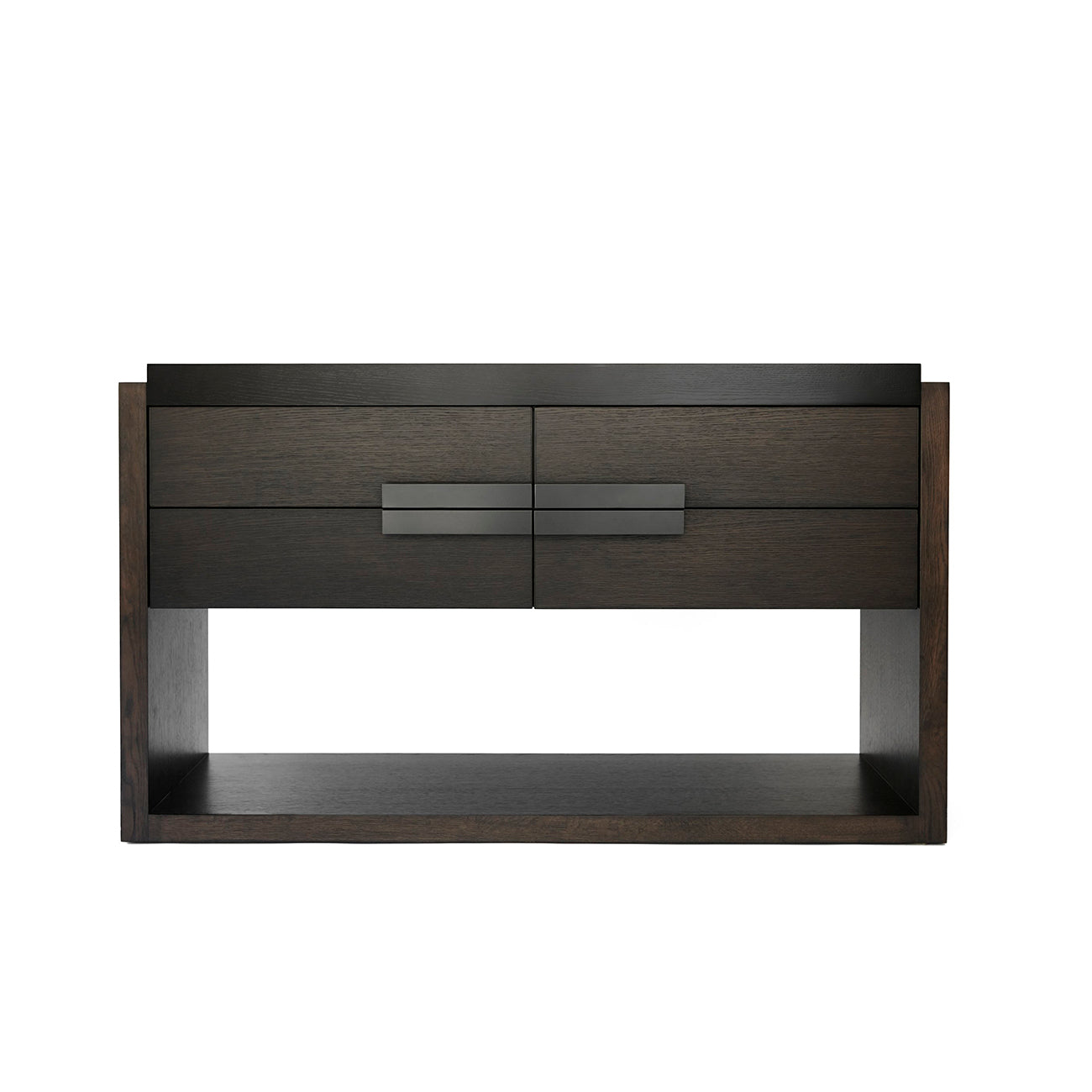 Designed to stand alone as a room divider or against a wall, the Banks is detailed with custom bronze handles and a combination of open grain and polished timber.