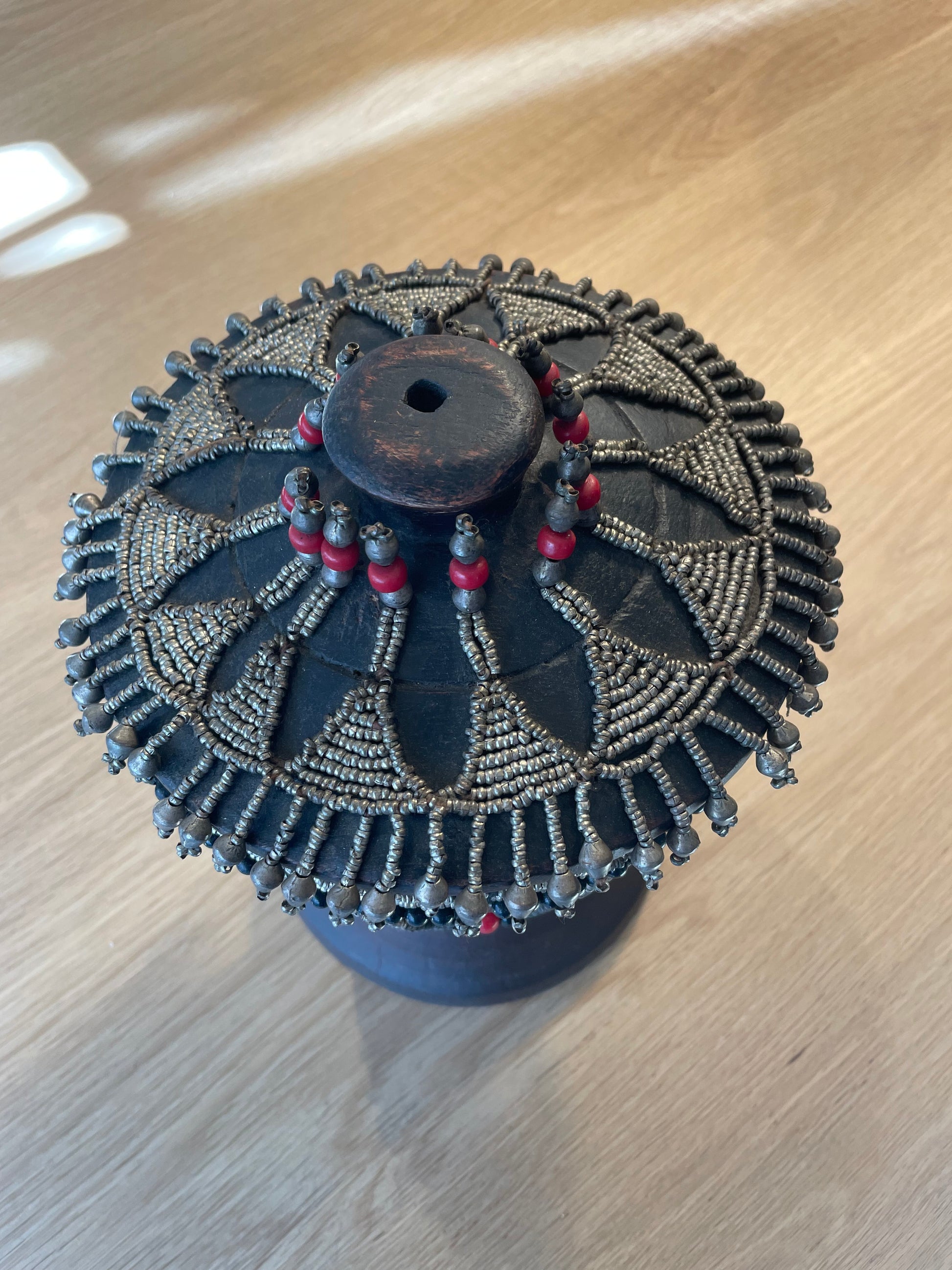 The Beaded Ethiopian Container measures 20 x 25cm h.