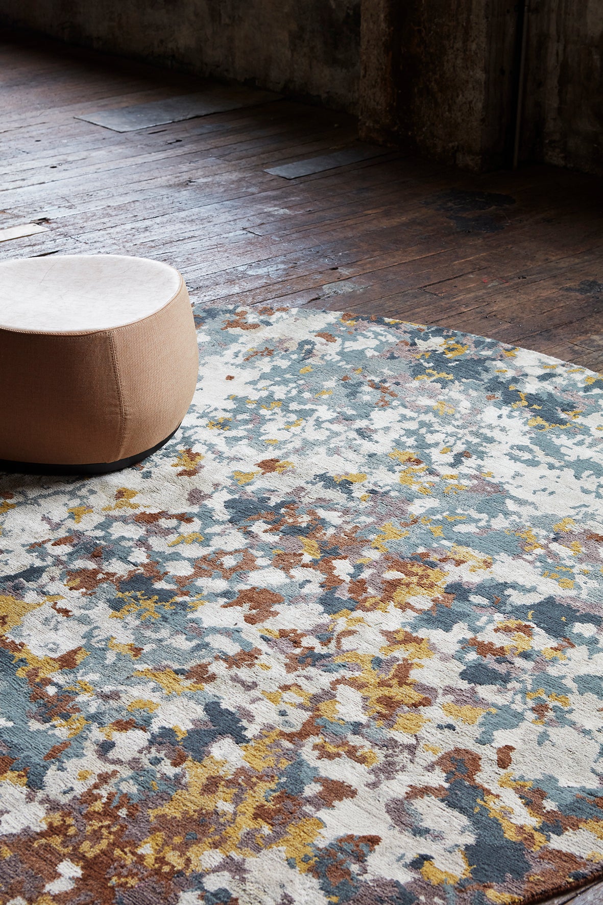 Hand-knotted rug in Tibetan Wool, Hemp and Silk.