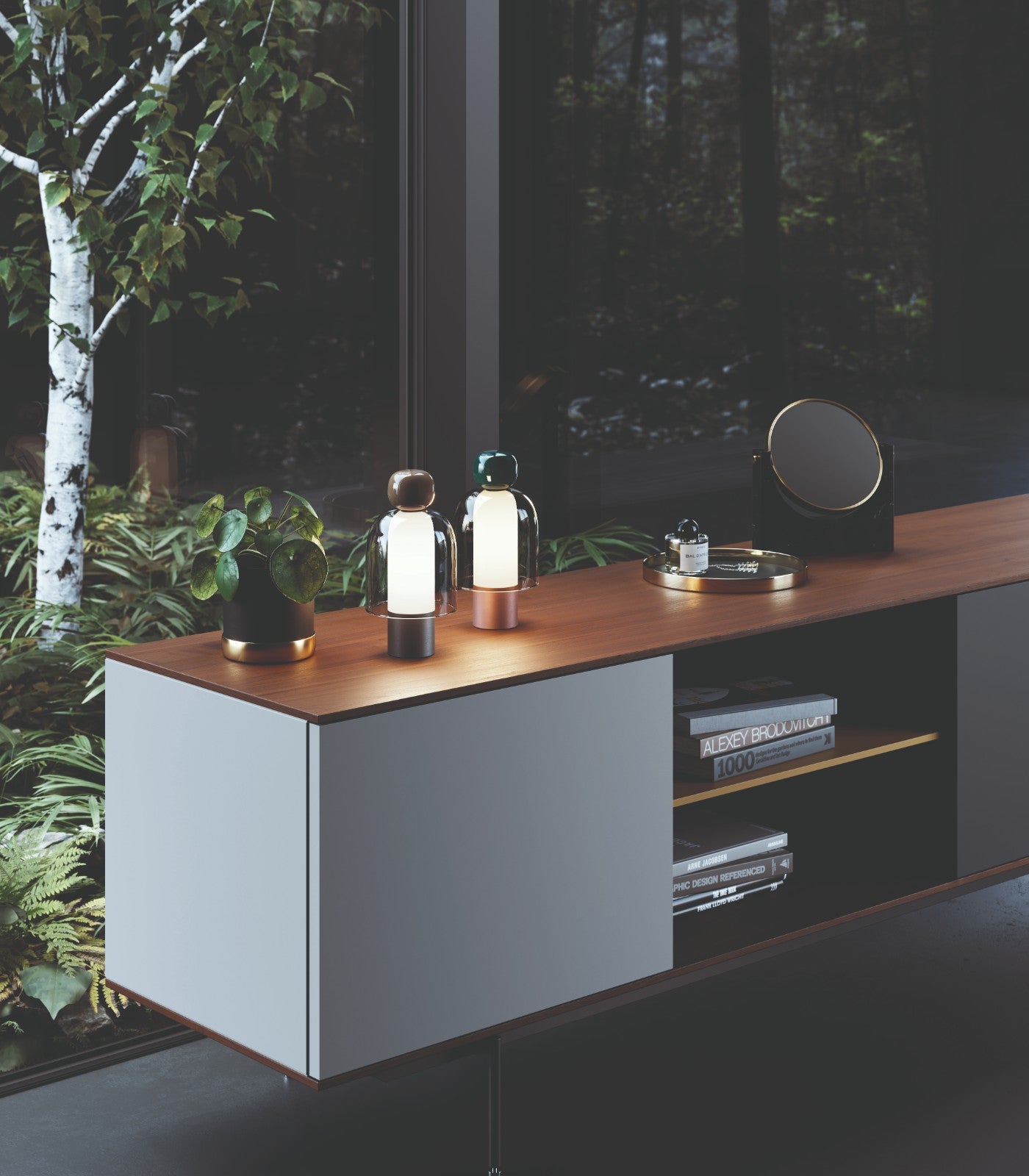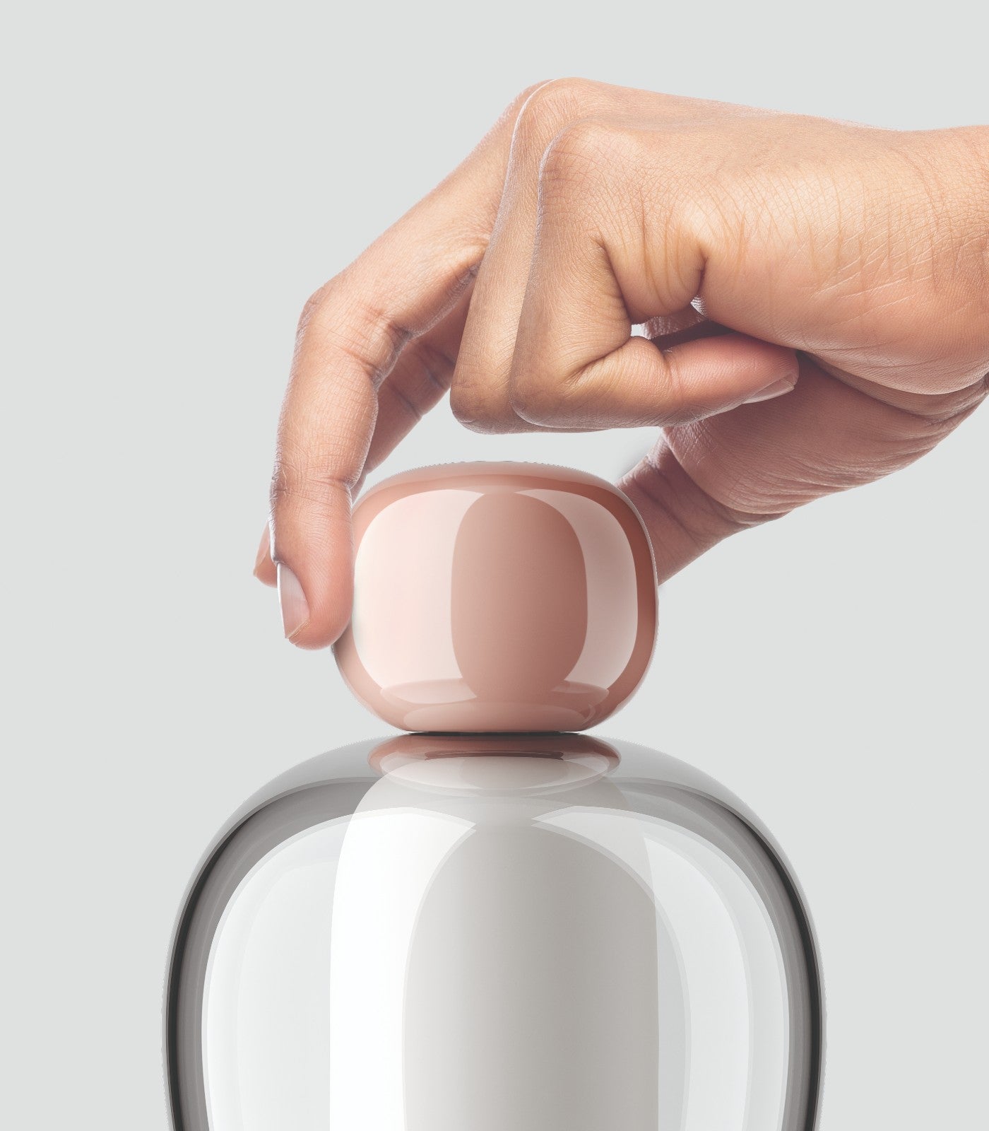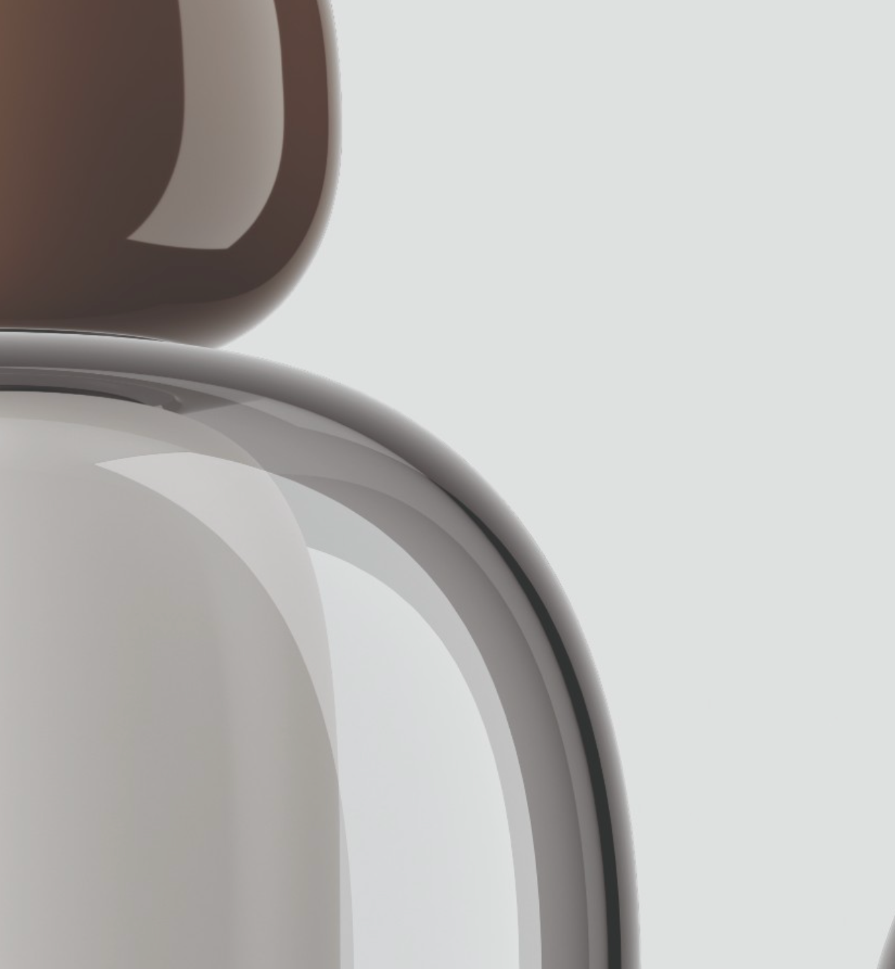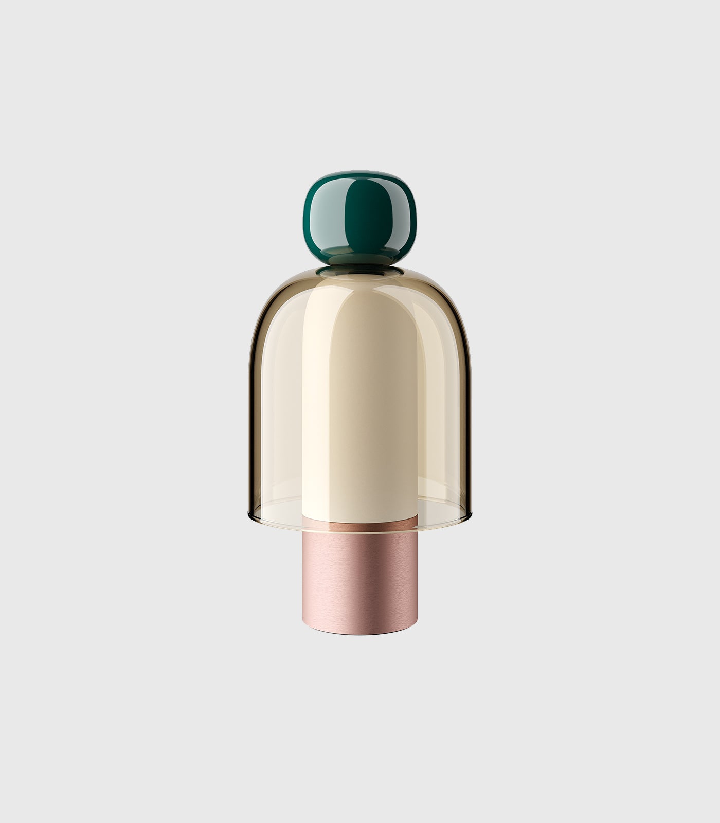 Made of blown glass and metal, Easy Peasy allows for personal customisation of the living spaces. Its portability, different shapes and colours, and the dim-to-warm functionality of its light source allow users to connect, play and interact with the variable configuration options. LED 3W 2700K included.