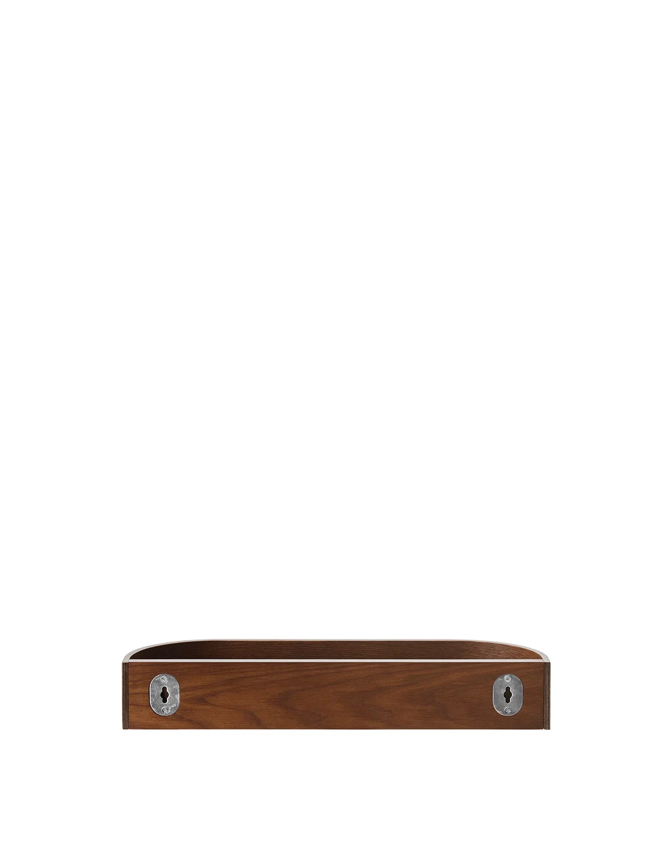 Designed for Audo by Nina Bruun, the Epoch Shelf is crafted in wood veneer and offered in two natural finishes: natural or dark stained oak. The multipurpose, space-saving design features on the one side a deep shelf for everyday clutter and on the other a shelf on which to place decorative objects. Multiples can be suspended in horizontal or vertical rows.