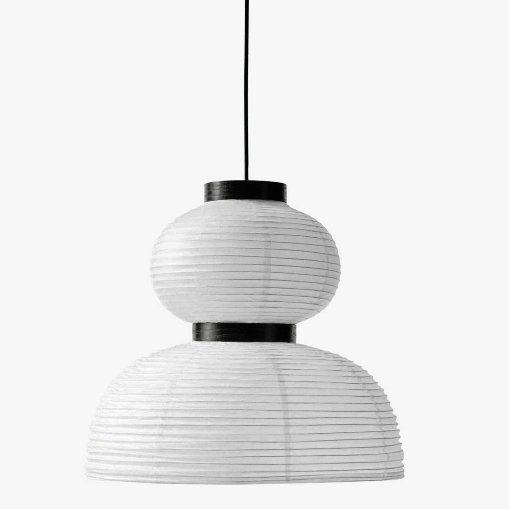The Paper Lantern series is comprised of different versions in ivory white rice paper with black stained oak accents in sizes from 46 cm in diameter to 70 cm.