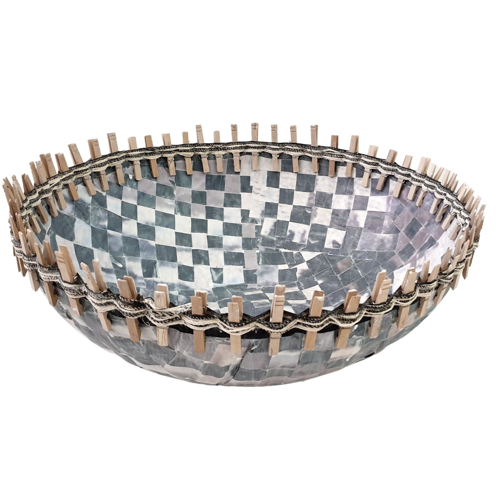 "Galleria", A Large Vessel is made with paper, pegs and string and measures 62 x 28cm h
