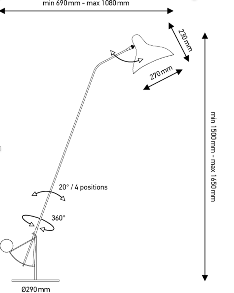 Dimensions: H (Adjustable)1500 - 1650mm x base 290 Diam