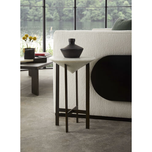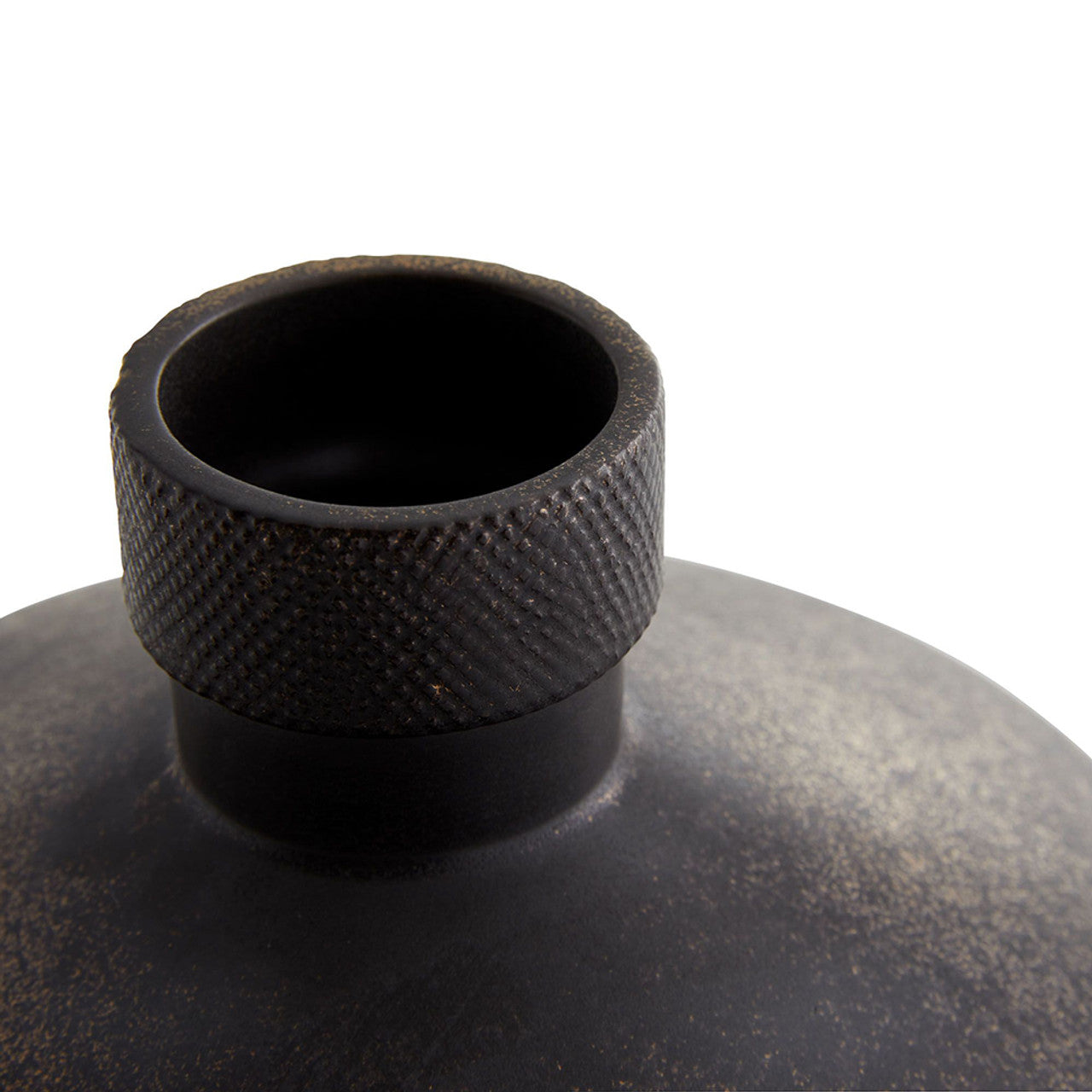 This bold porcelain vase is the epitome of industrial refinement. A contrast of clean lines and a hand-brushed bronze finish gives the earthenware a unique polish and texture with the etched knurled top and chattered texture. Finish will vary