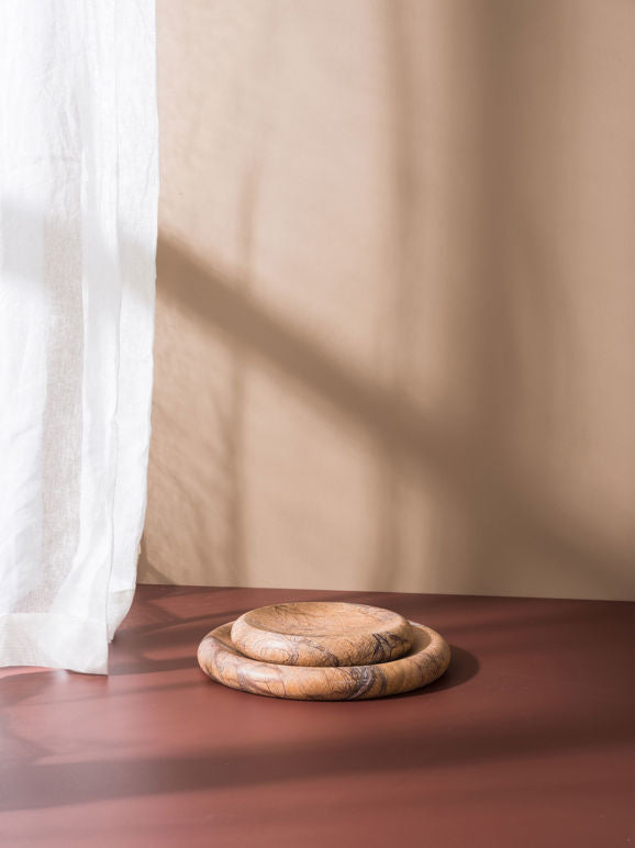 The bowl is skillfully hand-carved from forest brown marble. The natural minerals found within marble add to the character and makes each bowl completely unique.