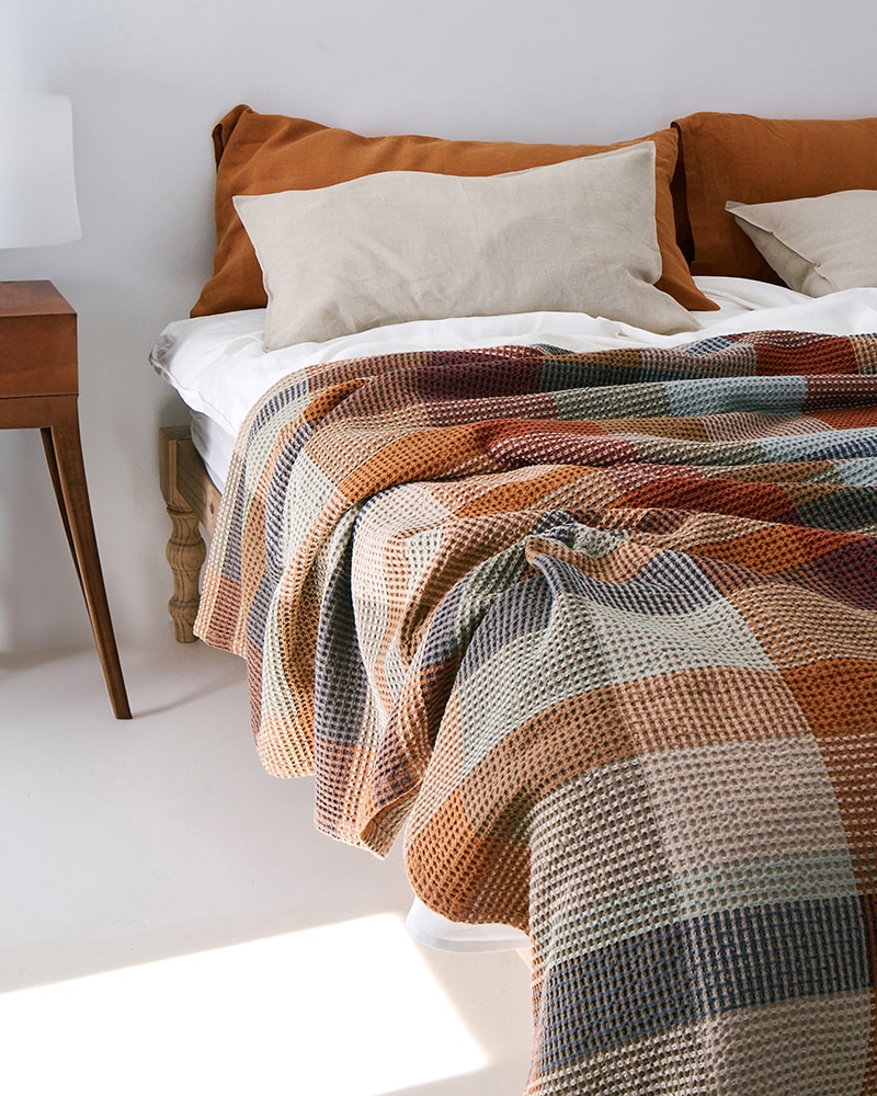 Experience the unique beauty of the MUNGO Vrou-Vrou Throw - Its is a statement in textile design which creates one-of-a-kind patterns with every fold.