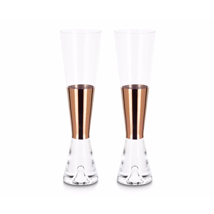 This set of two has been mouth-blown from clear glass and crafted to produce a unique shape. The copper band has been hand-painted with care to produce an elegant glass for champagne or cocktails. Match with more glasses from the Tank collection to develop your distinctive table setting.