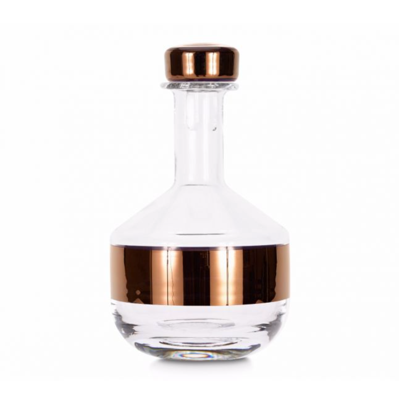 A mouth-blown whiskey decanter presented in gift-worthy packaging. Made in Poland, this decanter is ornamented with hand-painted copper detailing. This Tank decanter takes its sculptural cue from the functional shapes and volumes of scientific glassware. Featuring a hot-cut edge and an etched Tom Dixon logo.